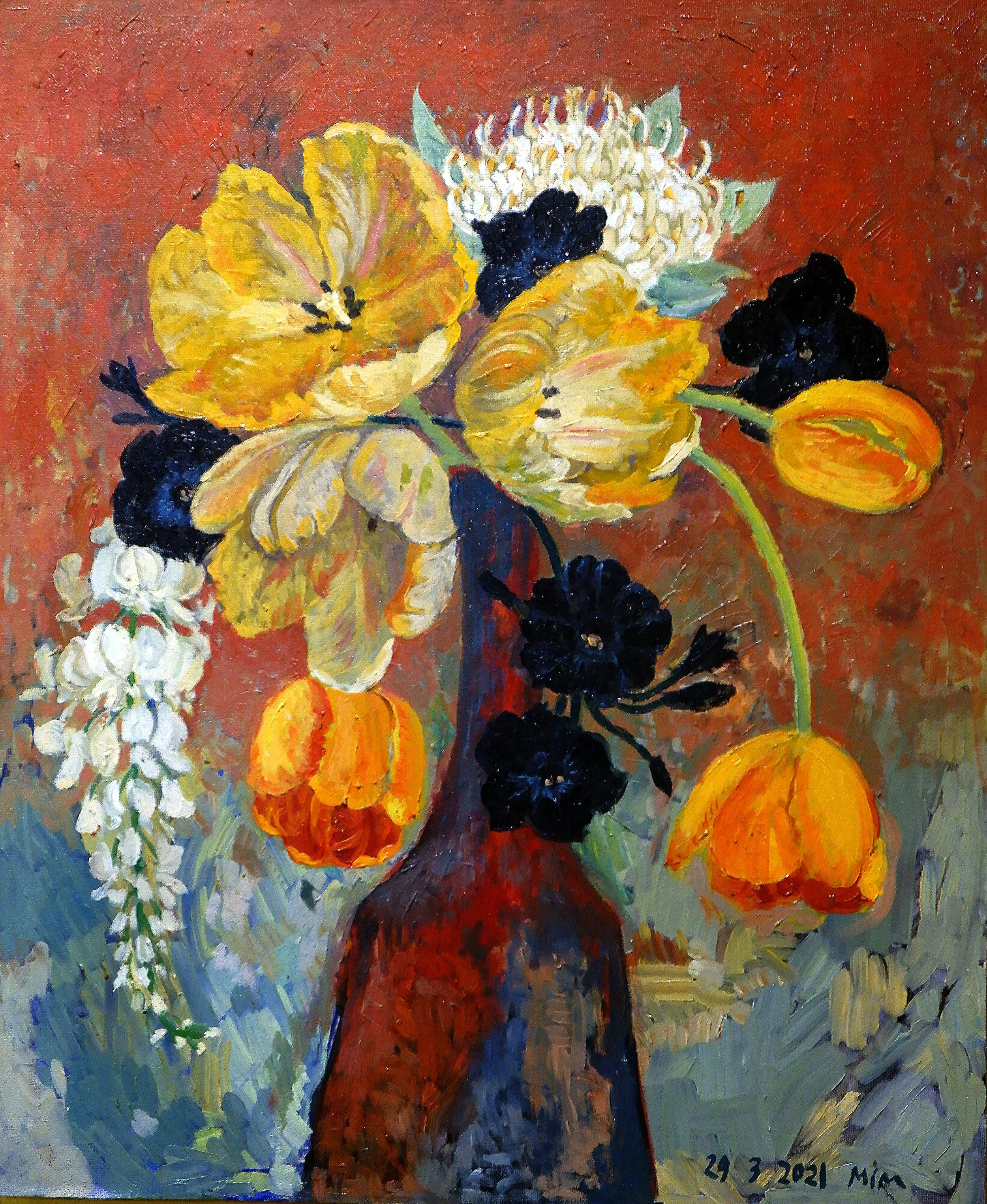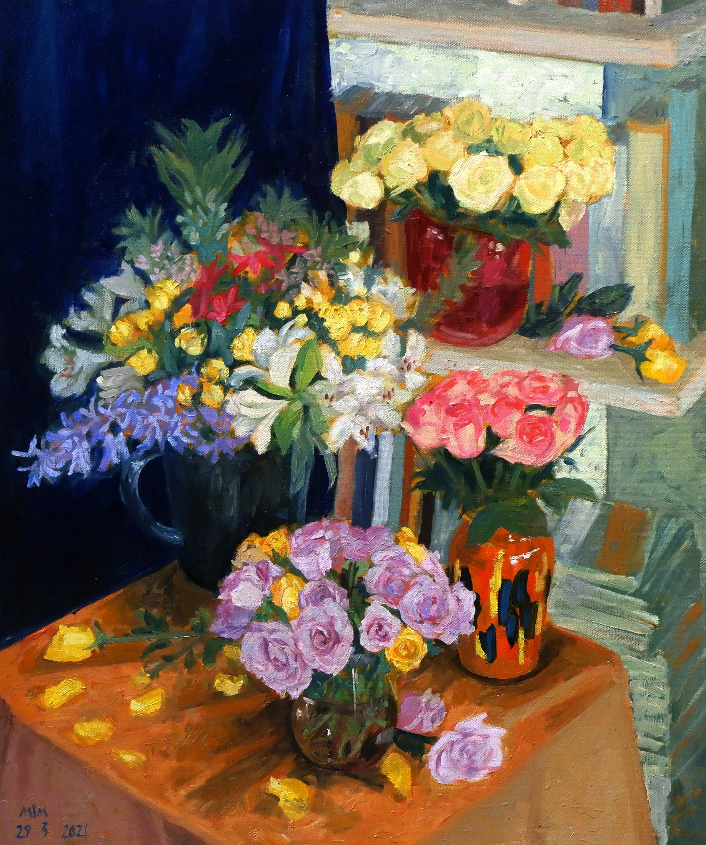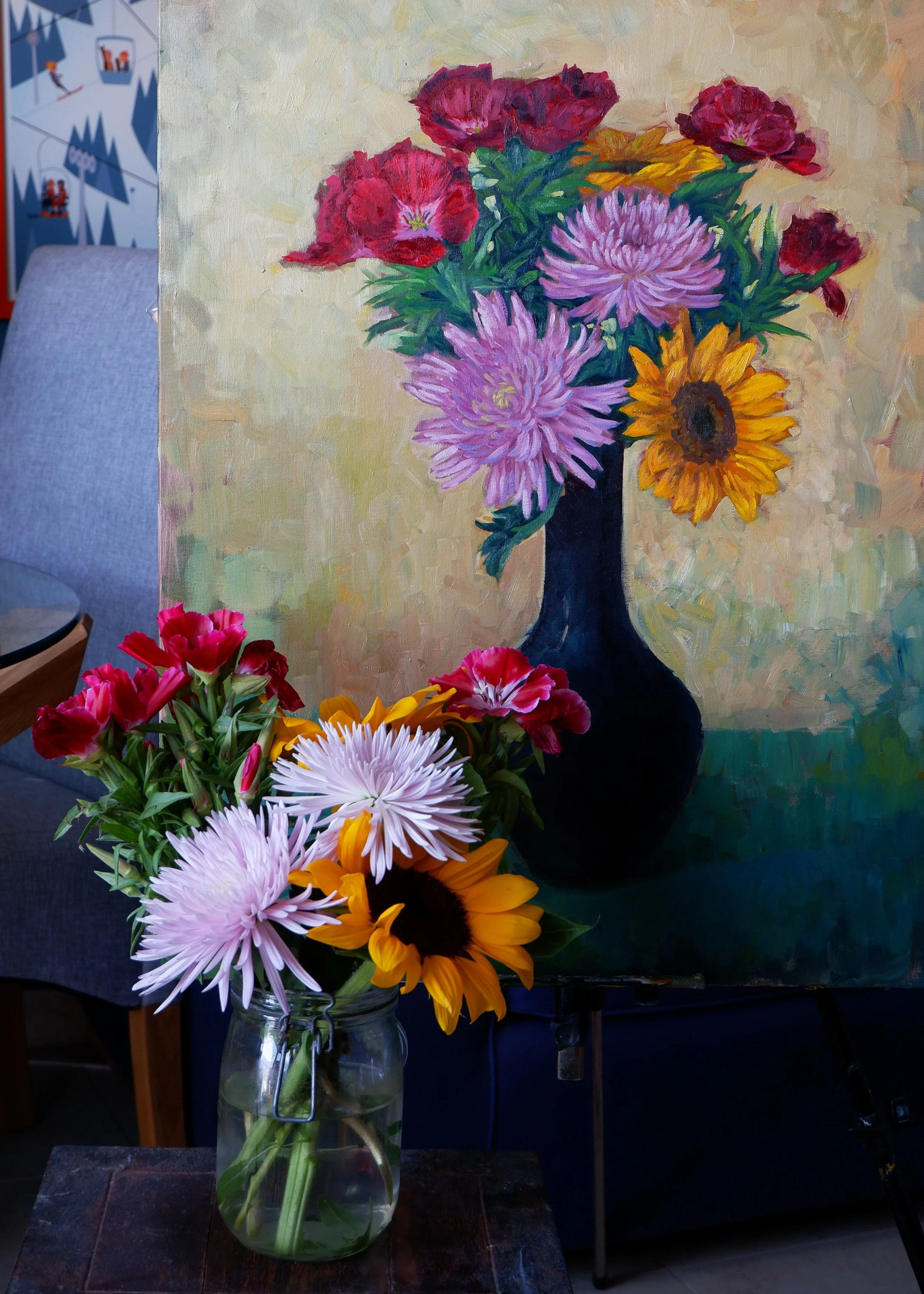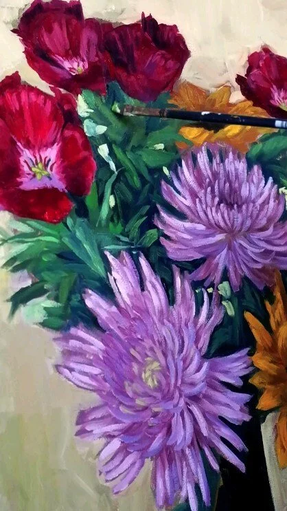I spent much of my childhood at events like weddings, birthdays and funerals, watching (sometimes helping) as my mother laid on food for the guests. Always there: flowers, marking love, birth, and death. Each arrangement is a kind of song, marks its own rhythm (even in the spaces between), and each says something just beyond us that I never get bored reaching for. Even funerals are about life.